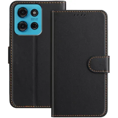Phonesta Smooth Skin Book Wallet Case hoesje voor Motorola Moto G75 - Zwart
