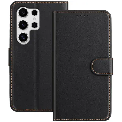 Phonesta Leather Vertical Flip Wallet Case hoesje voor Samsung Galaxy S25 Ultra - Zwart