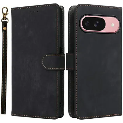 • Phonesta Vintage Skin Book Wallet Case hoesje voor Google Pixel 10 / 10 Pro - Zwart