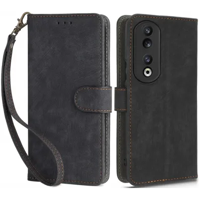 Phonesta Vintage Skin Book Wallet Case hoesje voor HONOR 90 - Zwart