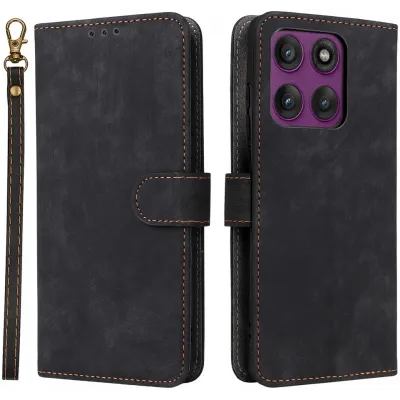 De Phonesta Vintage Skin Book Wallet Case is een stijlvolle en praktische hoes voor jouw Motorola Edge 60 Pro. Dit hoesje is vervaardigd uit hoogwaardig polyurethaan (PU) leer en thermoplastisch polyurethaan (TPU), wat zorgt voor een comfortabele grip en een lange levensduur. De kleur zwart geeft het hoesje een elegante uitstraling, perfect voor zowel dagelijks gebruik als speciale gelegenheden. Met de magnetische sluiting blijft alles veilig opgeborgen, terwijl het meegeleverde koord ervoor zorgt dat je je telefoon altijd bij de hand hebt.
