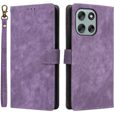 De Phonesta Vintage Skin Book Wallet Case is een stijlvolle en praktische hoes voor jouw Motorola Moto G56. Dit hoesje is vervaardigd uit hoogwaardig polyurethaan (PU) leer en thermoplastisch polyurethaan (TPU), wat zorgt voor een comfortabele grip en een lange levensduur. De kleur paars geeft het hoesje een elegante uitstraling, perfect voor zowel dagelijks gebruik als speciale gelegenheden. Met de magnetische sluiting blijft alles veilig opgeborgen, terwijl het meegeleverde koord ervoor zorgt dat je je telefoon altijd bij de hand hebt.