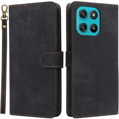 De Phonesta Vintage Skin Book Wallet Case is een stijlvolle en praktische hoes voor jouw Motorola Moto G57 Power. Dit hoesje is vervaardigd uit hoogwaardig polyurethaan (PU) leer en thermoplastisch polyurethaan (TPU), wat zorgt voor een comfortabele grip en een lange levensduur. De kleur zwart geeft het hoesje een elegante uitstraling, perfect voor zowel dagelijks gebruik als speciale gelegenheden. Met de magnetische sluiting blijft alles veilig opgeborgen, terwijl het meegeleverde koord ervoor zorgt dat je je telefoon altijd bij de hand hebt.
