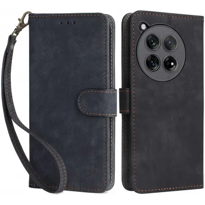 Phonesta Vintage Skin Book Wallet Case hoesje voor OnePlus 12 - Zwart