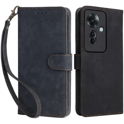 Phonesta Vintage Skin Book Wallet Case hoesje voor Oppo Reno11 F 5G - Zwart