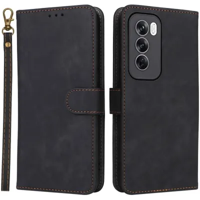 Phonesta Vintage Skin Book Wallet Case hoesje voor Oppo Reno12 Pro - Zwart