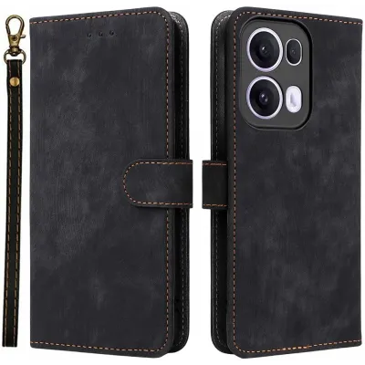 • Phonesta Vintage Skin Book Wallet Case hoesje voor Oppo Reno13 Pro - Zwart