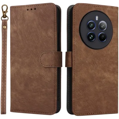 Phonesta Vintage Skin Book Wallet Case hoesje voor Realme 12 Pro/12 Pro Plus - Bruin