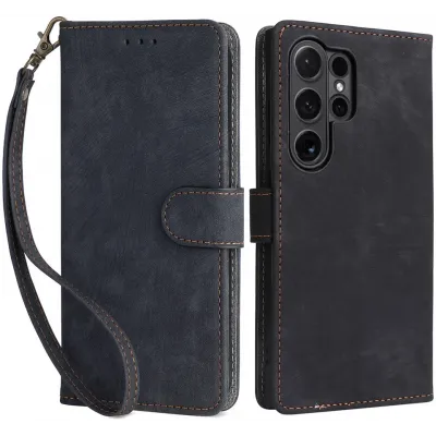 De Phonesta Vintage Skin Book Wallet Case is een stijlvolle en praktische hoes voor jouw Samsung Galaxy S24 Ultra. Dit hoesje is vervaardigd uit hoogwaardig polyurethaan (PU) leer en thermoplastisch polyurethaan (TPU), wat zorgt voor een comfortabele grip en een lange levensduur. De kleur zwart geeft het hoesje een elegante uitstraling, perfect voor zowel dagelijks gebruik als speciale gelegenheden. Met de magnetische sluiting blijft alles veilig opgeborgen, terwijl het meegeleverde koord ervoor zorgt dat je je telefoon altijd bij de hand hebt.