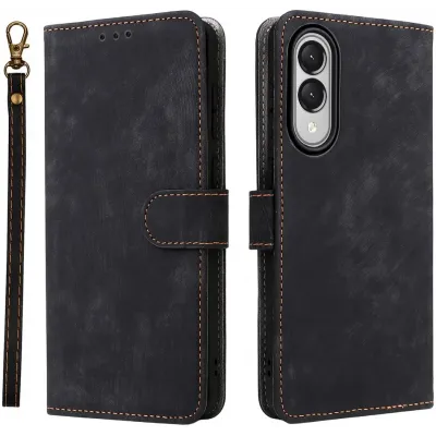 De Phonesta Vintage Skin Book Wallet Case is een stijlvolle en praktische hoes voor jouw Samsung Galaxy S25 Edge. Dit hoesje is vervaardigd uit hoogwaardig polyurethaan (PU) leer en thermoplastisch polyurethaan (TPU), wat zorgt voor een comfortabele grip en een lange levensduur. De kleur zwart geeft het hoesje een elegante uitstraling, perfect voor zowel dagelijks gebruik als speciale gelegenheden. Met de magnetische sluiting blijft alles veilig opgeborgen, terwijl het meegeleverde koord ervoor zorgt dat je je telefoon altijd bij de hand hebt.