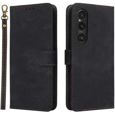 • Phonesta Vintage Skin Book Wallet Case hoesje voor Sony Xperia 1 VI - Zwart