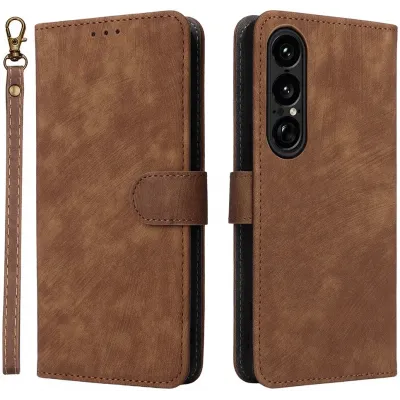 • Phonesta Vintage Skin Book Wallet Case hoesje voor Sony Xperia 1 VII - Bruin